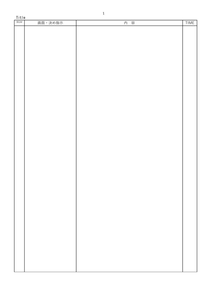 - 記載例より:「OP映像×××× (02:30)」→ このセクションに2分30秒かけることが明確になり、ディレクターは2分30秒ぴったりで次の指示を出す準備ができます。